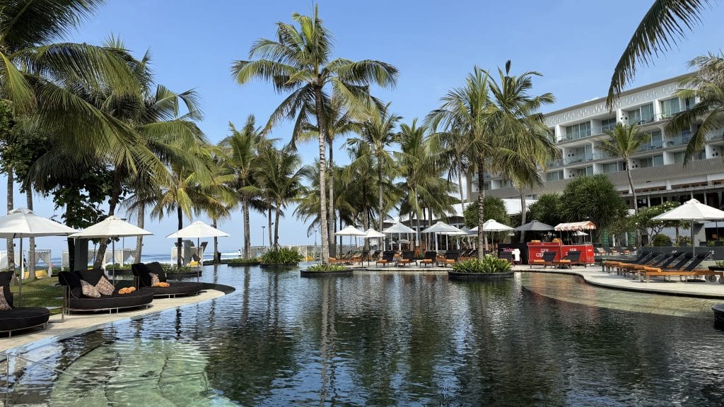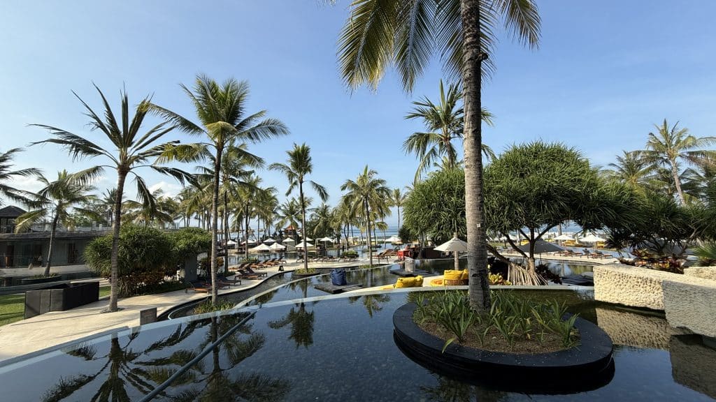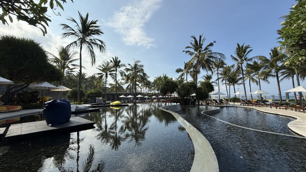 Besonders toll finde ich im W Bali Seminyak die Poollandschaft, die eine tolle Atmosphäre unter Palmen und einen direkten Blick auf das Meer bietet. Hier kommt man direkt in Urlaubsstimmung, sieht man diesen tollen Bereich doch schon direkt aus der lichtdurchfluteten Lobby!