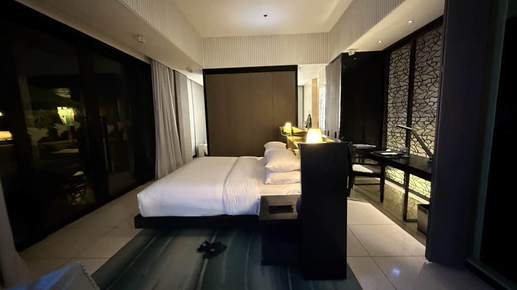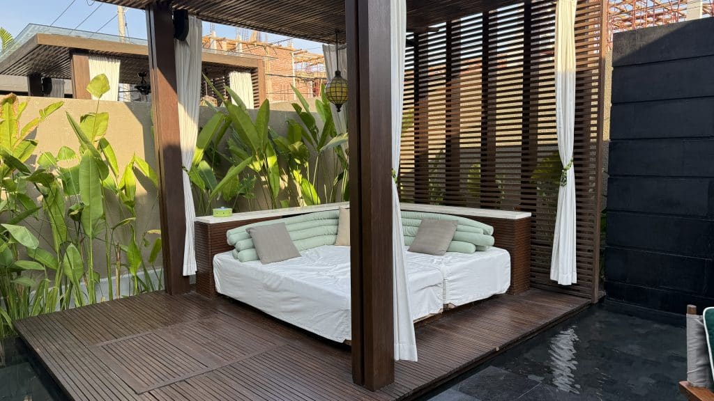 Sobald man die Villa über den Außenbereich betritt, steht man im Grunde genommen direkt vor dem Bett – der Schnitt der Villen im W Bali Seminyak unterscheidet sich fraglos von anderen Hotels.