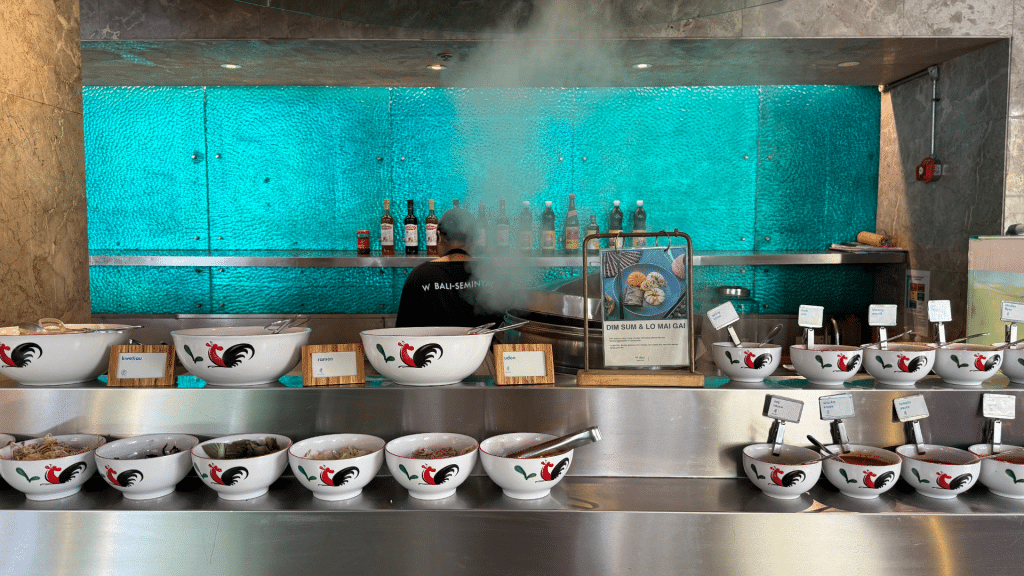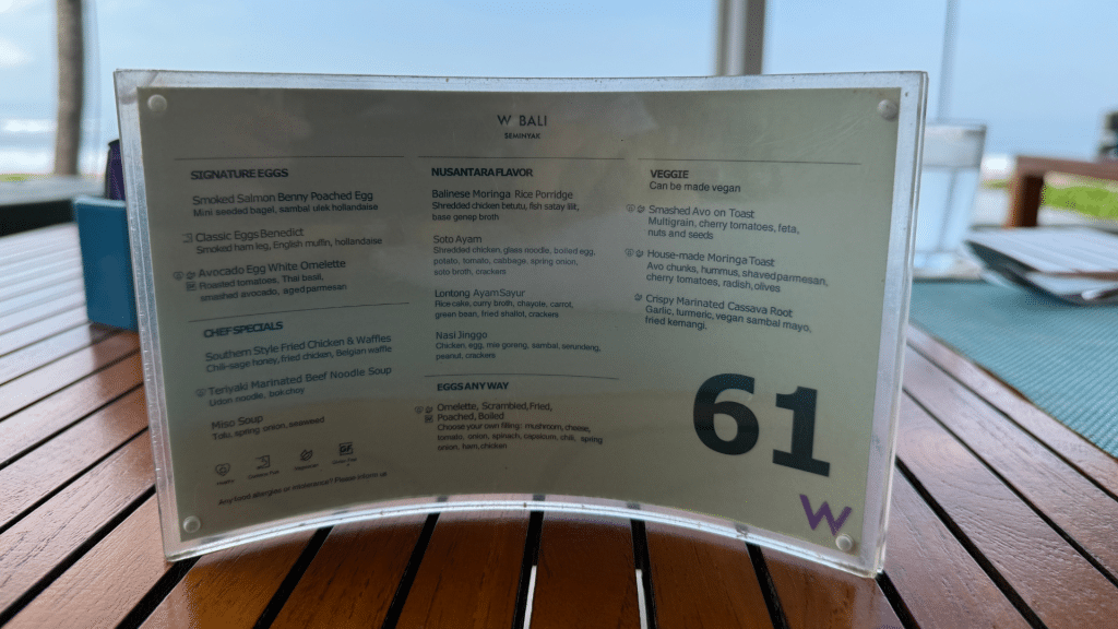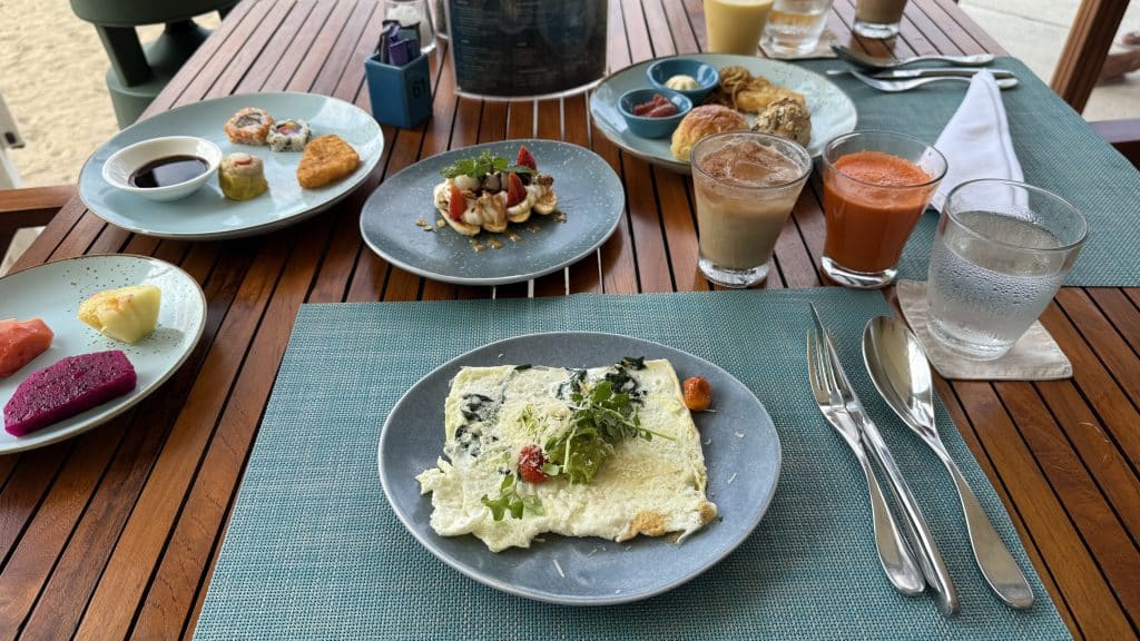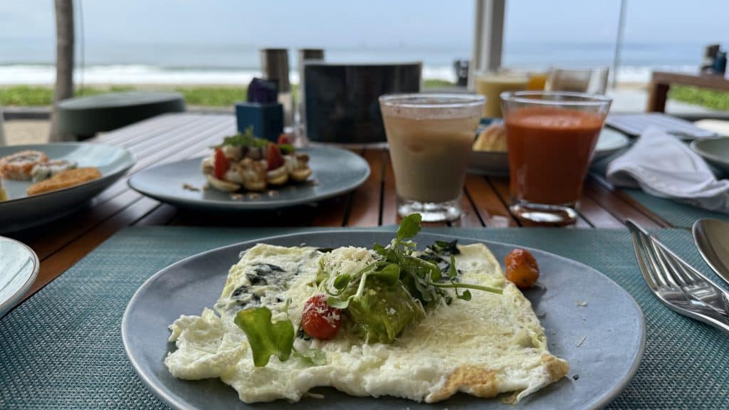 Bei meinem kurzen Aufenthalt konnte ich im Rahmen der W Bali Seminyak Bewertung unter anderem das Frühstück testen. Dieses wird in einem Mix aus Buffet und à la carte in schöner Atmosphäre mit dem Meeresrauschen im Hintergrund serviert.