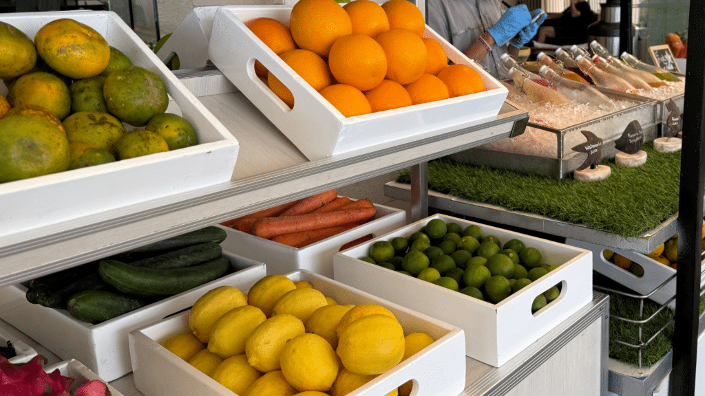 Wirklich überzeugend ist das Buffet, insbesondere bei lokalen Spezialitäten. Toll ist etwa neben dem Salatbuffet auch die Obst- und Saftstation. Hier gibt es nicht nur sehr viele verschiedene Obstsorten, sondern auch die Möglichkeit, sich verschiedene Säfte und Smoothies auf Wunsch zubereiten zu lassen.