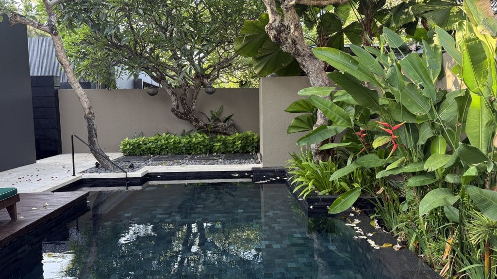 Da man die Villen im W Bali Seminyak durch den Außenbereich betritt, möchte ich bei meiner W Bali Seminyak Bewertung mit einem Blick auf diesen anfangen.