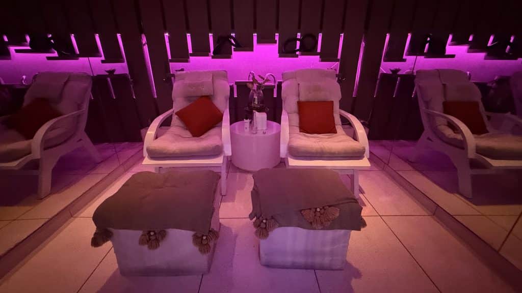 Neben dem großen Pool- und Strandbereich des W Bali Seminyak gibt es auch noch einen Spa und einen Fitnessraum. Das Spa bietet dabei neben Behandlungen auch einen für Gäste ohne Behandlungen zugänglichen Bereich, der unter anderem eine Sauna und einen Ruheraum bietet.