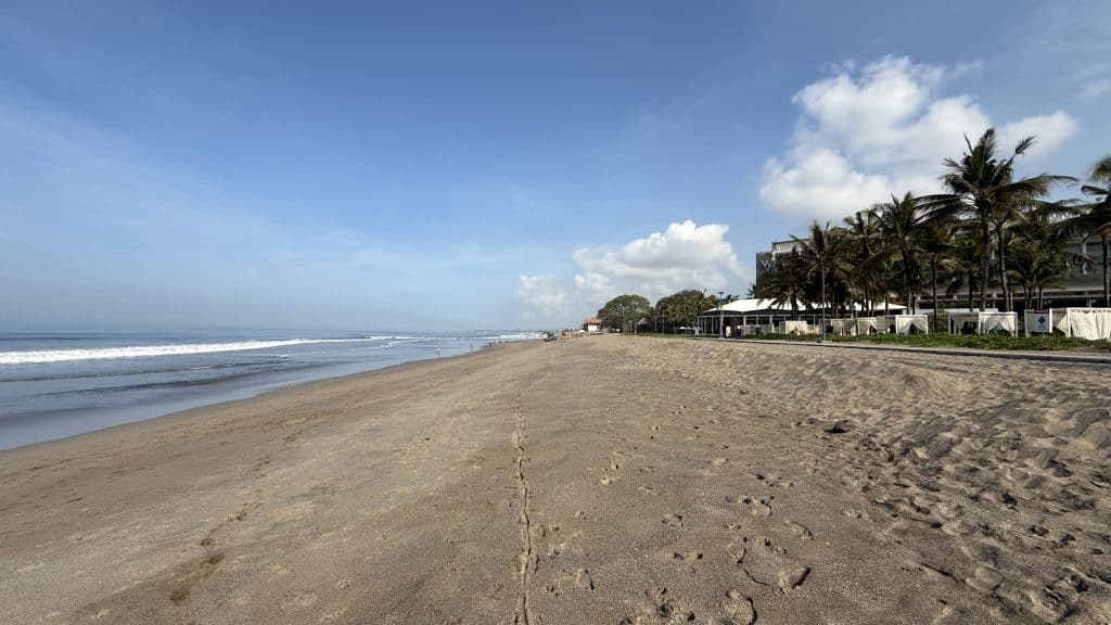 Liegen auf dem Strand gibt es leider nicht, allerdings kann man dennoch problemlos direkt von den Poolliegen zum Strand und auch ins Meer gehen. Bedenken sollte man jedoch, dass die Wellen in Seminyak üblicherweise sehr stark sind, sodass man aus Sicherheitsgründen nicht immer schwimmen kann.