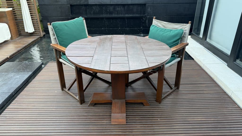 Einen Tisch mit zwei Stühlen, um im Außenbereich ein wenig zu arbeiten oder zu essen, gibt es zudem auch.