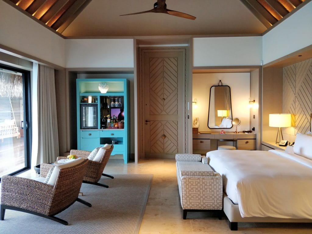 Nachdem die Anreise schon sehr beeindruckend war, bezieht sich der folgende Absatz meiner Waldorf Astoria Maldives Ithaafushi Bewertung auf die Unterkunft in dem Resort.