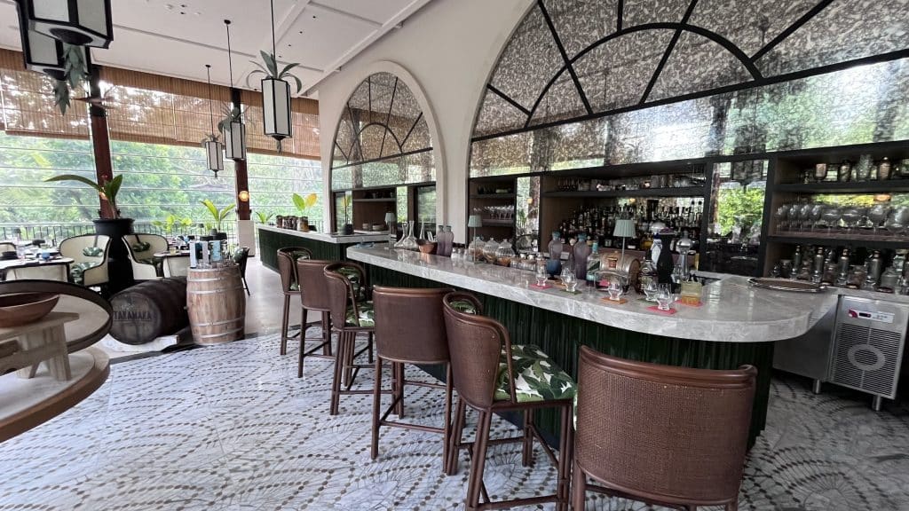 Wer aber den Sonnenuntergang genießen möchte, sollte vor dem Dinner zunächst im Lalin, der Hauptbar des Resorts vorbeischauen und dort einen Aperitif zu sich nehmen. Die Bar liegt im Herzen des Resorts, oberhalb des kleinen Shops, als Dachterrasse angelegt. Von hier aus kann man das rosa-pinke Farbspiel bestens beobachten und von den Barkeepern individualisierte, allein auf Präferenzen des Gastes aufgebaute Drinks genießen.