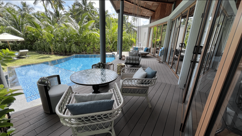 In Summe muss ich sagen, dass mir das Villenprodukt gut durchdacht erscheint und mit einem aus meiner Sicht sehr gutem Design, das lokale Elemente umfasst, daherkommt. Ich habe mich insgesamt im Innen- sowie Außenbereich wohlgefühlt und mir gefällt, dass man durch die Abtrennungen im Inneren auch eine gewisse Privatsphäre schaffen kann. An sich ist aber auch der gesamte Außenbereich kaum einsichtbar, weshalb dies aus meiner Sicht eine wirklich gute Option für ein Paar ist, das ganz für sich sein mag. Der private Conciergeservice ist zudem eine tolle Servicekomponente, die man aber auch auf hohem Niveau bei Villenaufenthalten erwarten darf.