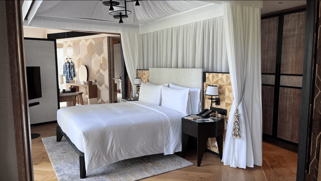 Ich habe das Waldorf Astoria Seychelles Platte Island, welches gerade erst im Februar 2024 eröffnet worden ist, im Rahmen unseres American Express Around the World Trips gebucht und dabei Sonderkonditionen erhalten. Regulär beginnen die Preise bei 2.100 Euro für die Einstiegskategorie, durch attraktive Angebote via reisetopia Hotels kann man allerdings auch Preise um rund 1.200 erhalten.