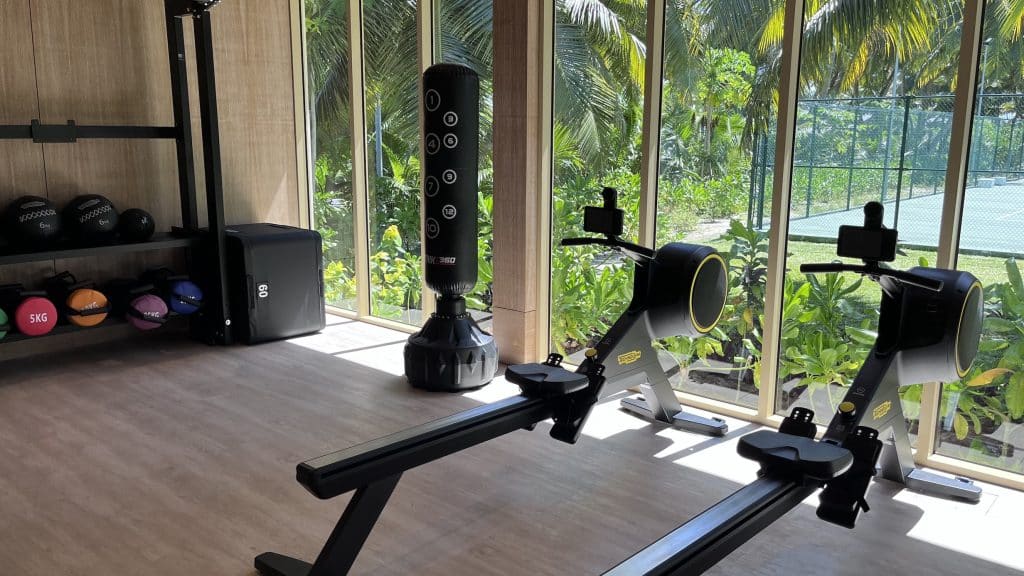 Das Waldorf Astoria Seychelles Platte Island verfügt über ein gut ausgestattetes, klimatisiertes Fitnesscenter mit anliegendem Tennis- und Padel-Tennisplatz.