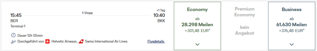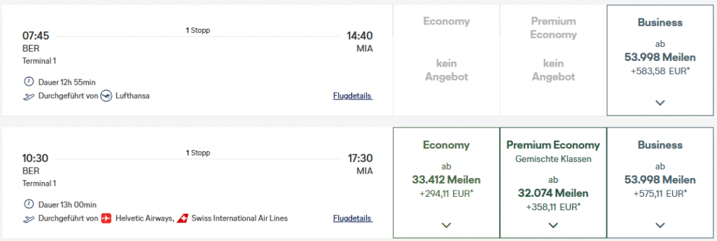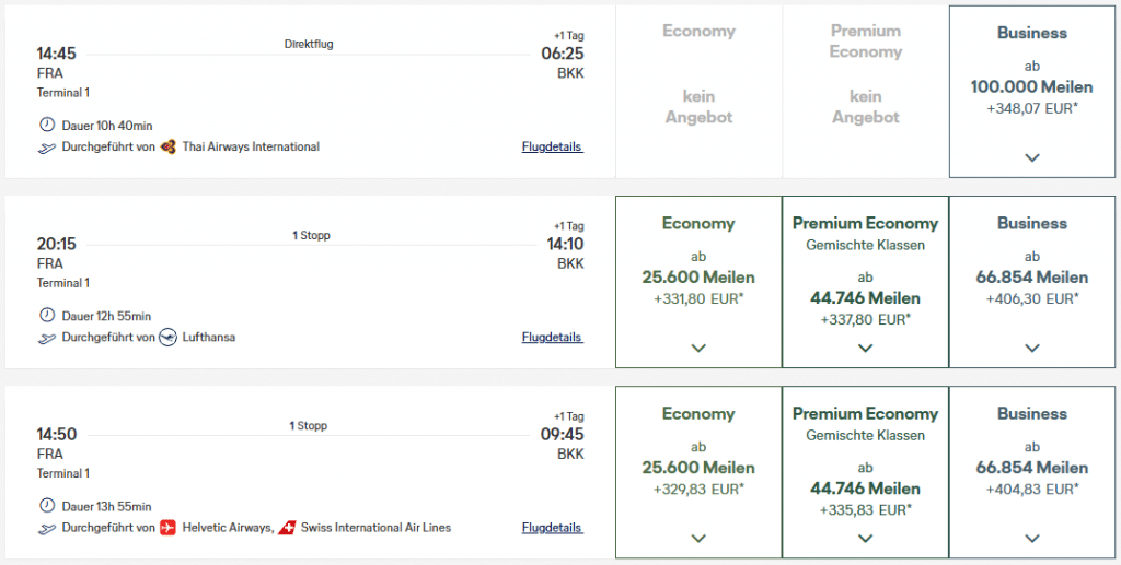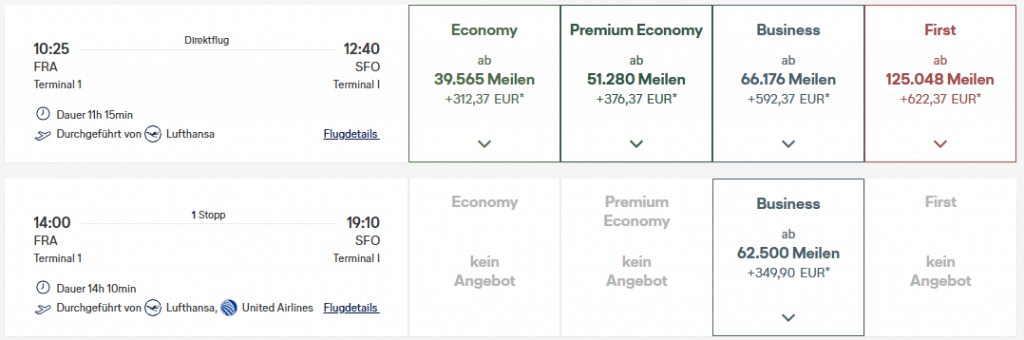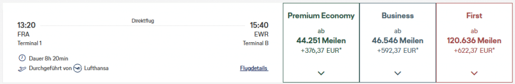 Ab Frankfurt kostet derselbe Flug dagegen knapp 73.000 Meilen: