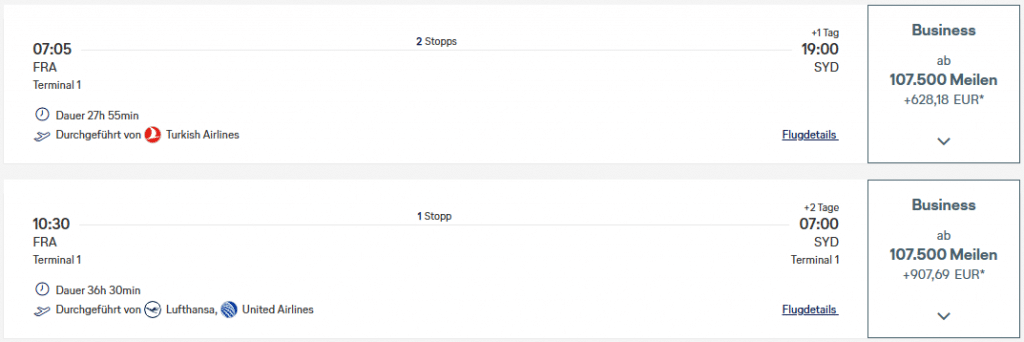 Spannend ist das auch für Awards nach Australien, denn selbst hier finden sich im neuen Systeme gute Verfügbarkeiten – teilweise in einer Kombination aus Lufthansa und einem Partner, teilweise aber auch für reine Partner-Awards: