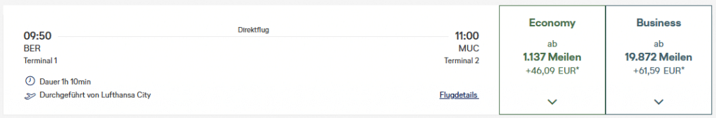 Positiv fallen im neuen System von Miles & More auch Flüge auf Kurzstrecken auf, denn diese sind sowohl in der Economy Class als auch in der Business Class vielfach deutlich günstiger als bisher. Auf innerdeutschen Verbindungen werden teils Werte von weniger als 1.000 Meilen pro Strecke aufgerufen, auch auf Europaverbindungen sind es oft kaum mehr. Dazu kommen zwar Zuschläge, gerade bei kurzfristigen Buchungen können die Meilentickets aber extrem attraktiv sein: