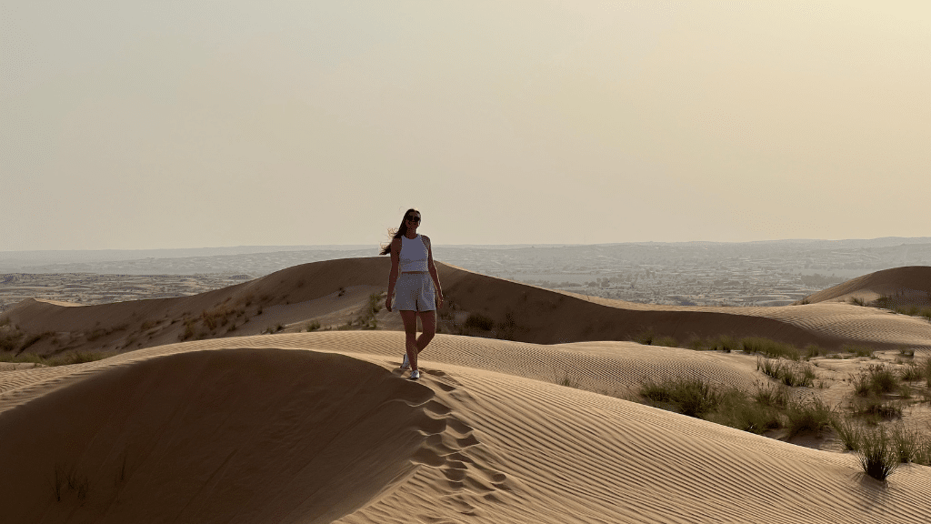 Besonders beeindruckt hat mich das Al Maha Resort in der Wüste von Dubai, wo es für uns als Nächstes hinging: Dünenfahrten, Reiten, Floating Breakfast, während wir die Tiere am Wasserloch beobachten konnten – und eine Antilope, die uns abends auf der Terrasse besucht hat. Ein ausführliches Review kommt natürlich noch.