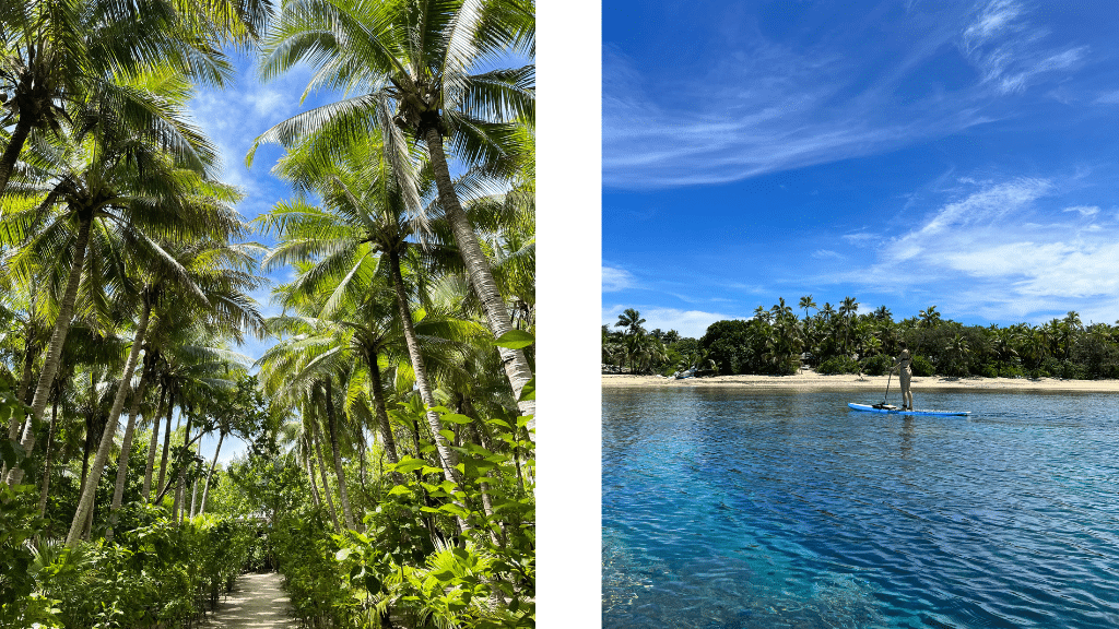Glasklares Wasser, weiße Strände, Palmen übersäte Inseln, bunte Korallenriffe. Ein richtiger Südseetraum. Wie meine Schwester so schön sagte: „Ich fühle mich, als ob man mich in einen Reisekatalog gesetzt hätte.“ Insgesamt haben wir drei verschiedene Inseln besucht und von unserer Unterkunft am Strand auf der zweiten Insel, konnten wir morgens direkt ins Wasser springen, schnorcheln gehen oder einfach den ganzen Tag mit dem SUP auf dem Meer verbringen.