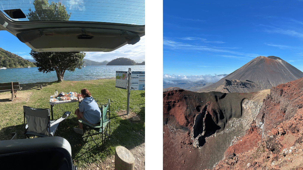 Und genauso vielfältig waren unsere Aktivitäten. Ob Schwimmen mit Delfinen in den Catlins, das Tongariro Alpine Crossing über ein aktives Vulkangebiet, ein Besuch im Hobbiton Movie Set, ein Fallschirmsprung aus 5000m Höhe über dem Abel Tasman Nationalpark oder die Thermalquellen in Rotorua, wo alles nach Schwefel riecht. Die Reise hat einfach mein Herz erfüllt.
