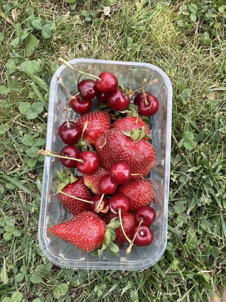 Zwischen dem Entdecken stärkte ich mich mit süßen ungarischen Beeren von der Markthalle, Baumkuchen oder auf Ungarisch Kürtöskalács und vielen Langos.
