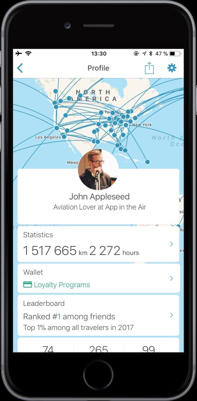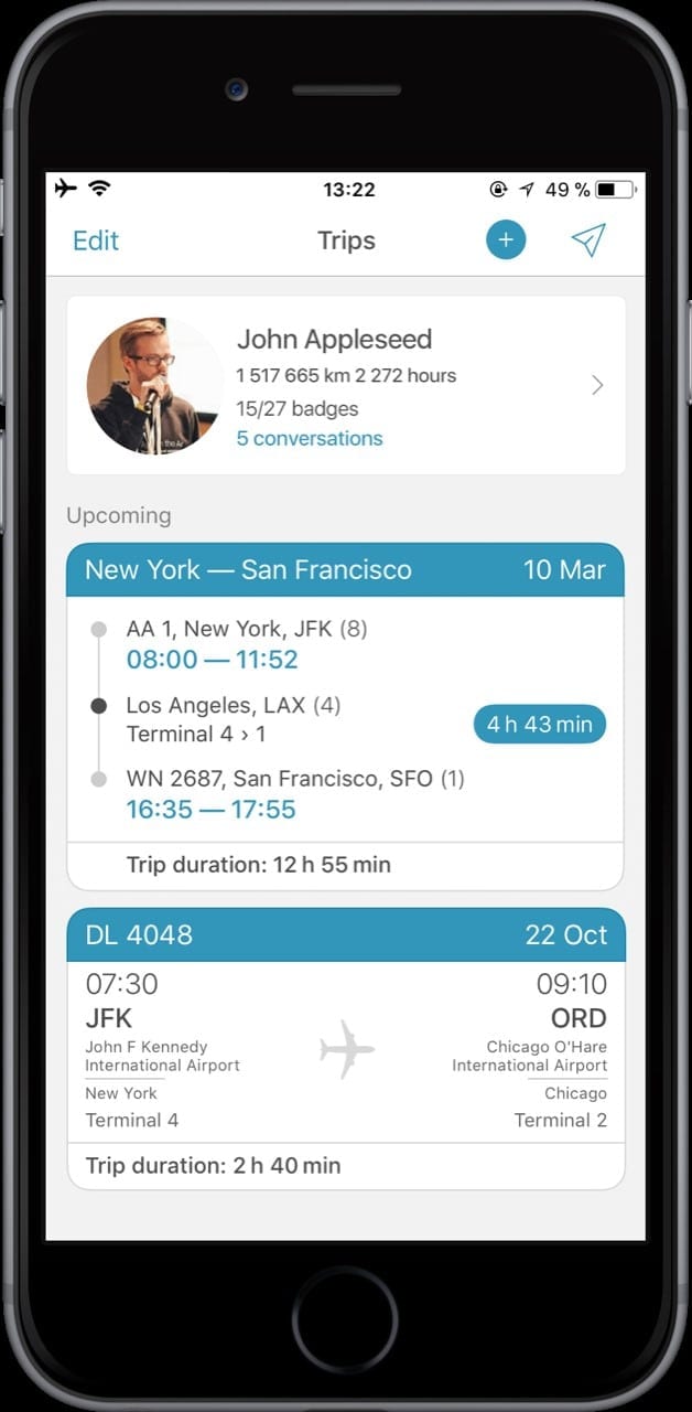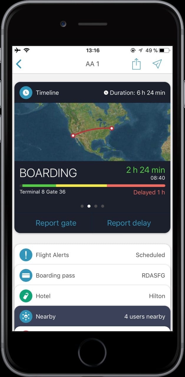 Ich behalte auch gerne den Überblick über meine vergangenen Flüge. Ich finde es einfach interessant zu sehen, welche Distanzen ich bereits zurückgelegt habe oder mit welchen Flugzeugtypen ich wie häufig geflogen bin. Hier nutze ich App in the Air. Doch die App kann weitaus mehr. Mithilfe von Push Benachrichtigungen werdet Ihr über Gate Änderungen oder den Beginn des Boardings informiert. Auch wenn sich Euer Abflug verspätet erhaltet Ihr einen Hinweis. Dadurch spart Ihr Euch den regelmäßigen Gang zu einem der Infobildschirme am Flughafen und seid trotzdem immer bestens informiert.