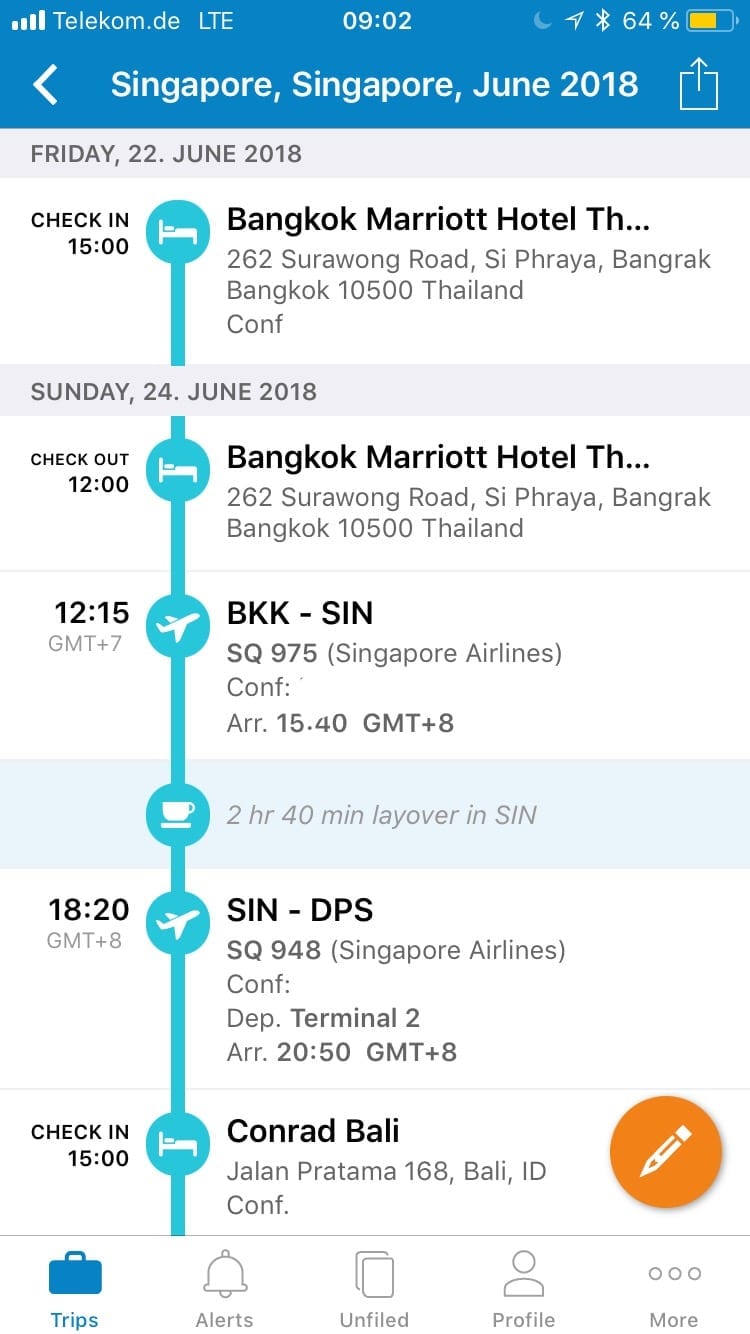 Bei den zahlreichen Reisen immer den Überblick zu behalten ist nicht einfach. Dank diverser Handyapps gelingt es jedoch vergleichsweise einfach und Ihr habt alle nötigen Informationen übersichtlich zusammengefasst. Speziell TripIt und App in the Air gehören zu den häufig benutzten Apps auf meinem Handy.