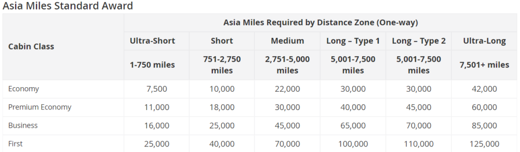 Wie bei allen Vielfliegerprogrammen ist die Nutzung der Meilen für Prämienflüge die attraktivste Option. Es gibt mehrere Awardcharts, je nachdem ob Ihr mit Cathay Pacific oder oneworld-Airlines fliegen wollt. Bei Flügen mit Cathay Pacific gilt dabei seit Herbst 2023 die folgende Tabelle für Prämienflüge. Die Werte richten sich dabei jeweils nach der kumulierten Distanz und gelten für einen einfachen Flug:
